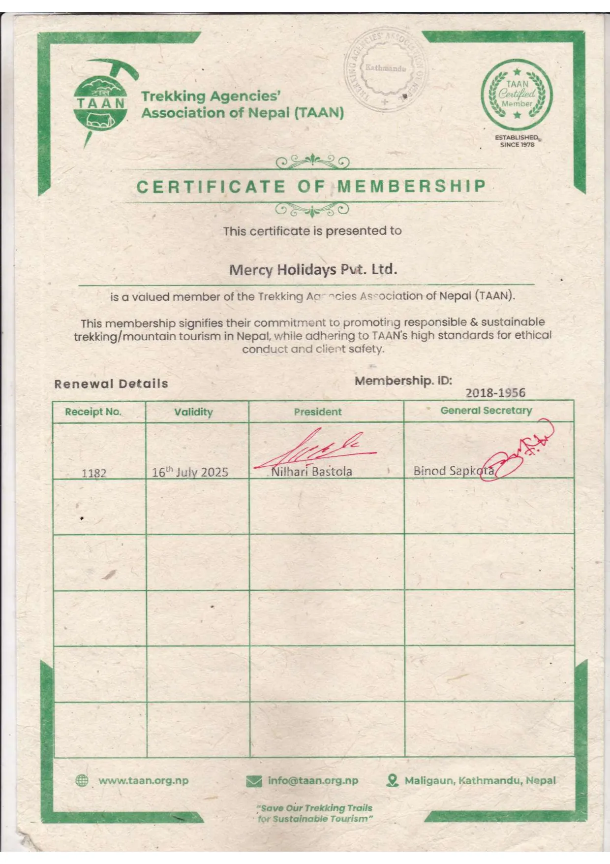 Mercy Holidays Trekking Licence