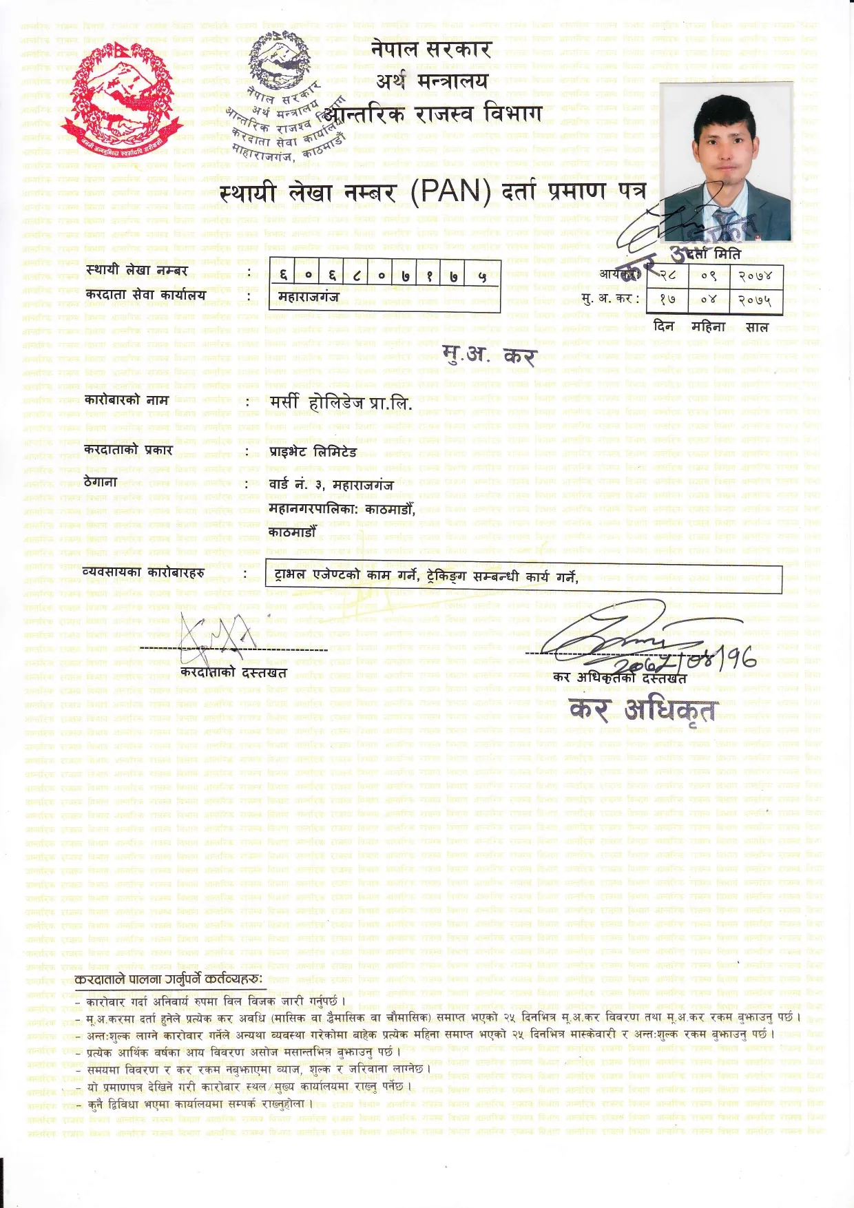 Mercy Holidays Tax Paid Receipt